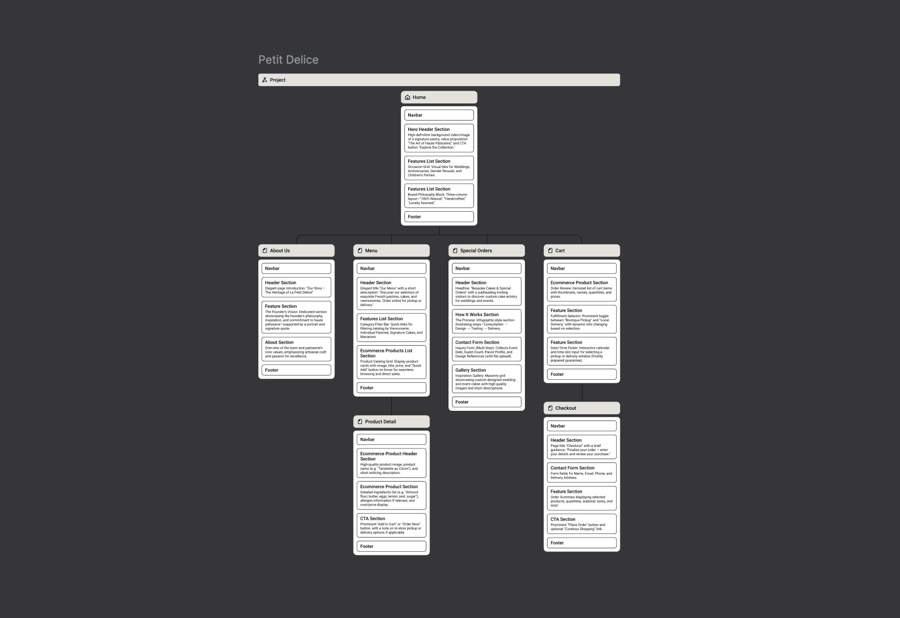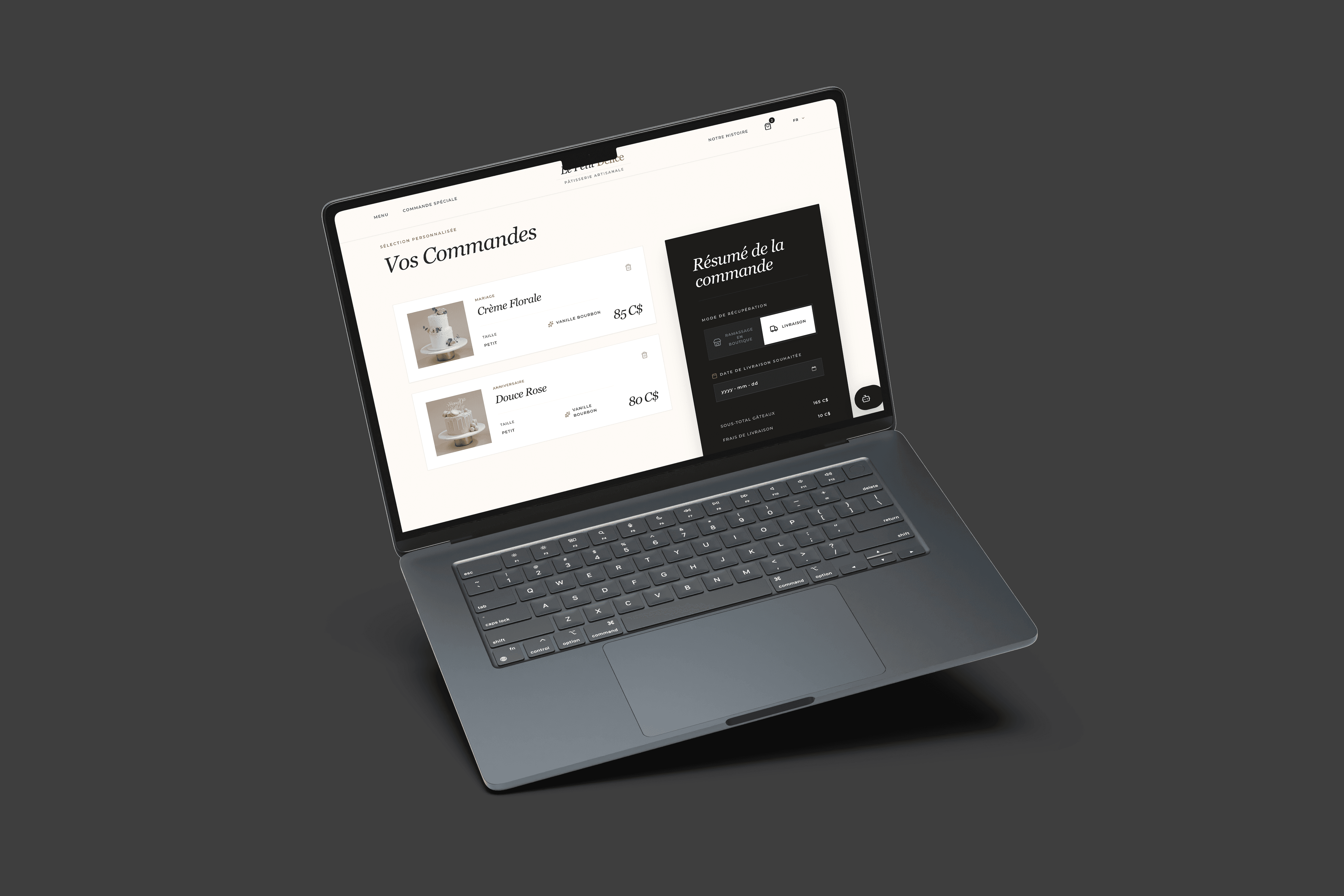 Le Petit Délice is a commercial website for an artisan pastry brand specializing in custom cakes for various occasions. The project focuses on showcasing a premium product and creating an emotional connection between the brand and the user through refined visual aesthetics and a thoughtfully designed user experience.
